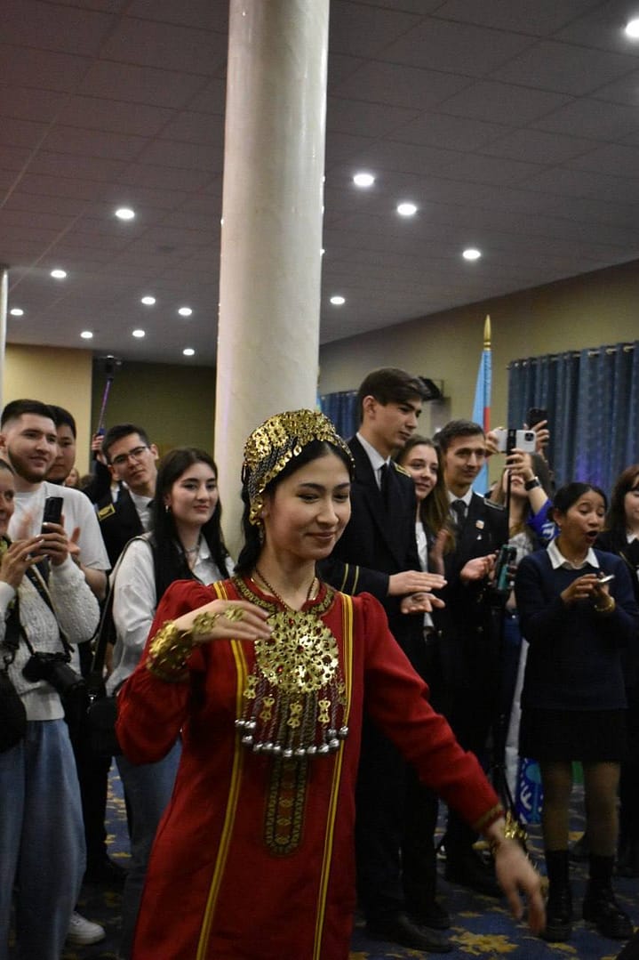 Творческие ребята из Совета туркменских студентов в Санкт-Петербурге «Багтыярлык» представили два номера. Ибрагим Ибрагимов и Какагелди Язгулыев, молодые бахши, исполнили композицию на дутаре. Также под песню «Куштепти» в исполнении Айны Курбановой ребята представили главный туркменский народный танец.